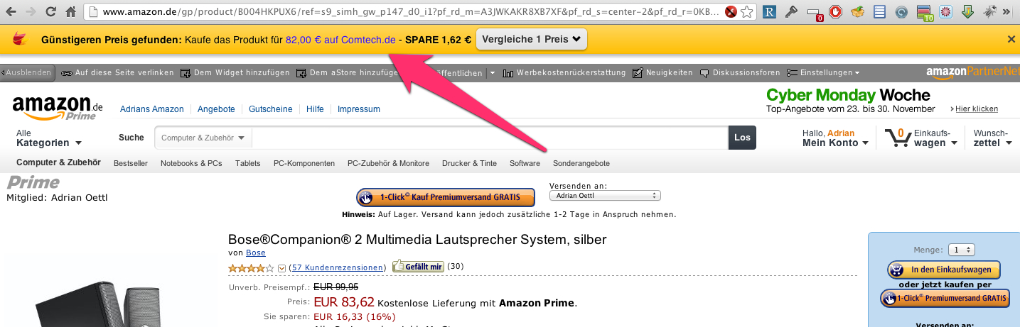 Bei Seiten wie bspw. amazon.de kommt dann ein Preisvergleich-Toolbar, sobald ein Artikel scheinbar günstiger gefunden wurde!